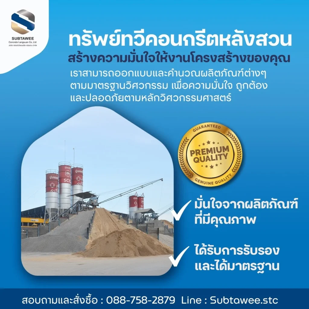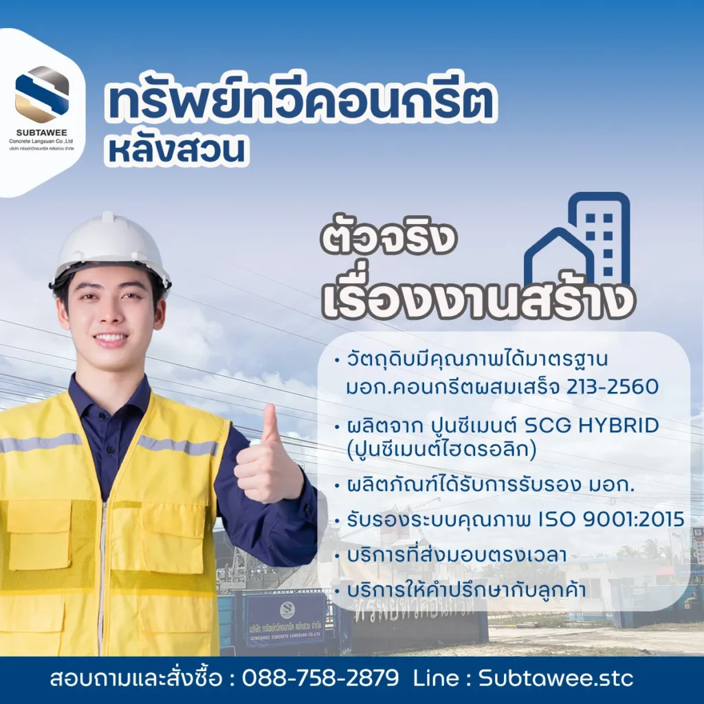 ทรัพย์ทวีคอนกรีตหลังสวน มั่นใจจากผลิตภัณฑ์ที่มีคุณภาพและได้รับการรับรองและได้มาตรฐานสร้างความมั่นใจให้งานโครงสร้างของคุณ