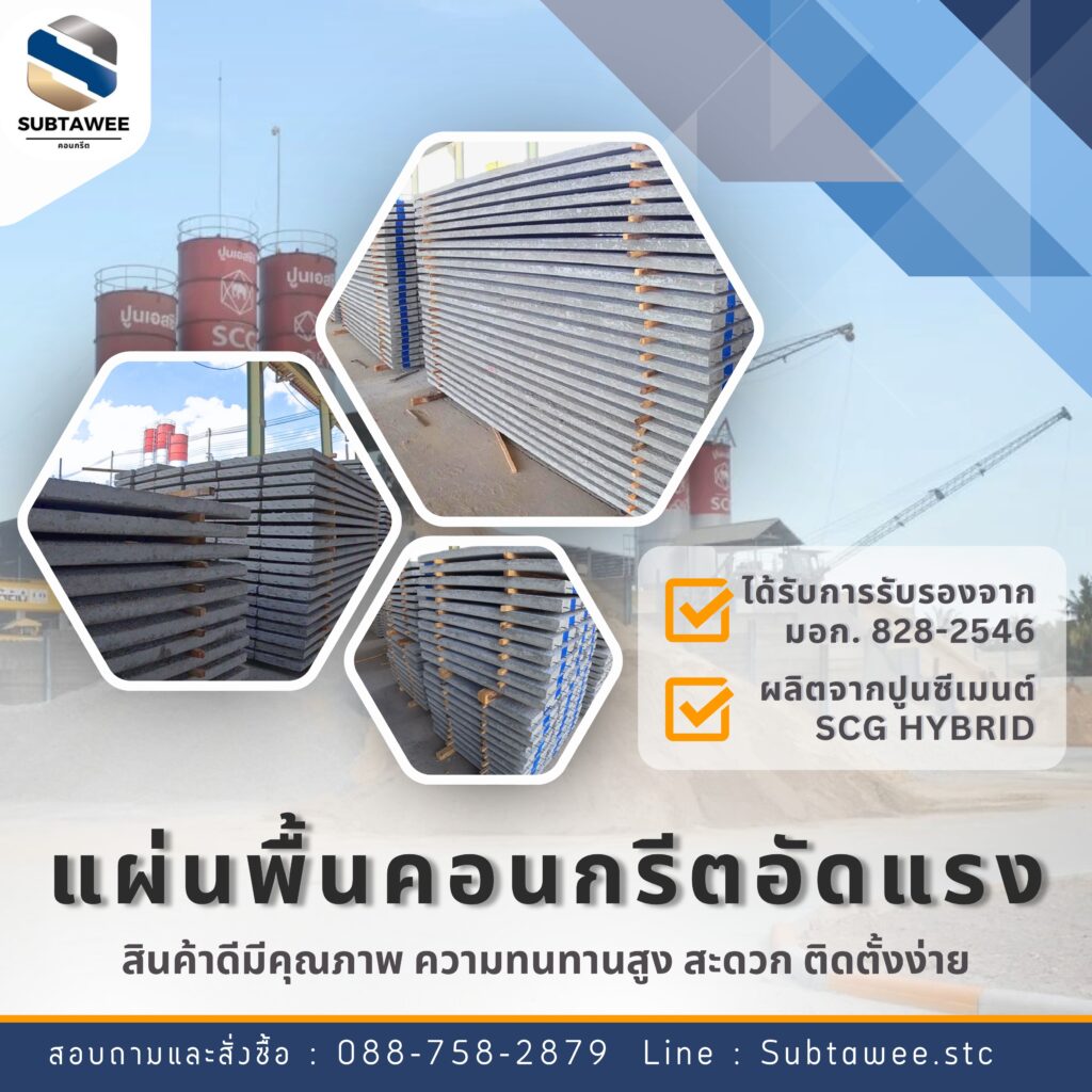แผ่นพื้นคอนกรีตอัดแรงคืออะไร? แผ่นพื้นคอนกรีตอัดแรง คือ ผลิตภัณฑ์คอนกรีตที่มีการอัดแรงด้วยวิธีการต่าง ๆ